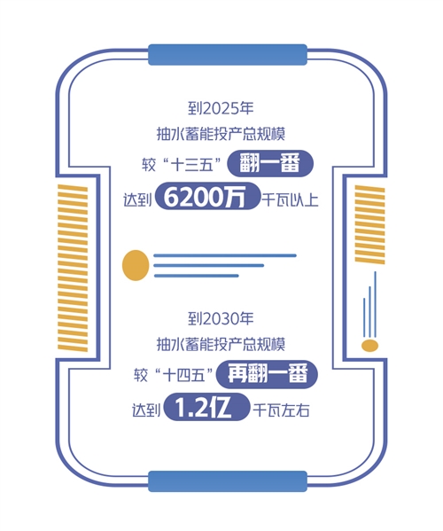 為推進抽水蓄能快速發(fā)展,適應新型電力系統建設和大規(guī)模高比例新能源發(fā)展需要,國家能源局近日發(fā)布《抽水蓄能中長期發(fā)展規(guī)劃(2021—2035年)》(以下簡稱《規(guī)劃》)提出,按照能核盡核、能開盡開的原則,在規(guī)劃重點實施項目庫內核準建設抽水蓄能電站。到2025年,抽水蓄能投產總規(guī)模較“十三五”翻一番,達到6200萬千瓦以上;到2030年,抽水蓄能投產總規(guī)模較“十四五”再翻一番,達到1.2億千瓦左右。