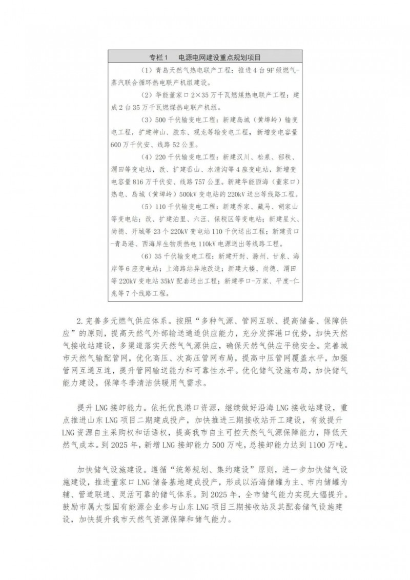 近日,山東青島市人民政府辦公廳印發(fā)了《關(guān)于印發(fā)青島市“十四五”能源發(fā)展規(guī)劃的通知》。提出了青島市“十四五”能源發(fā)展的主要任務(wù)和建設(shè)重點(diǎn)。實(shí)施可再生能源倍增計(jì)劃。以風(fēng)電、光伏發(fā)電為重點(diǎn),以生物質(zhì)能、海洋能、地?zé)崮艿葹檠a(bǔ)充。到2025年,可再生能源裝機(jī)容量新增270萬(wàn)千瓦左右,總裝機(jī)容量達(dá)到523萬(wàn)千瓦左右,占電力總裝機(jī)的比重提升至48%左右。