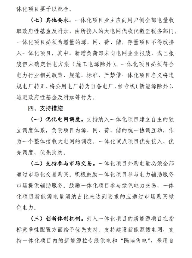 一體化項目外購電量必須全部通過市場化交易購買。積極鼓勵一體化項目參與電力輔助服務(wù)市場提供輔助服務(wù)。鼓勵一體化項目參與綠色電力交易,一體化項目新能源電量消納占比未達到要求的應(yīng)通過市場購買綠色電力。