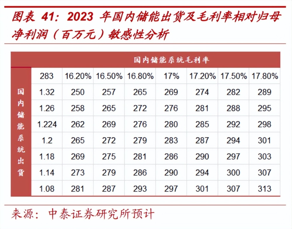 同時(shí),新產(chǎn)能逐步落地,2022 年 7 月, 公司宜春儲(chǔ)能生產(chǎn)基地一期年產(chǎn)能 3GWh 正式投產(chǎn),預(yù)計(jì)二期 5GW 產(chǎn) 能于 23 年底開始投產(chǎn),待項(xiàng)目滿產(chǎn)后總產(chǎn)能達(dá) 8GW。我們預(yù)計(jì) 22、23、 24 年國(guó)內(nèi)儲(chǔ)能系統(tǒng)出貨量分別為 0.06、1.20、2.40GWh,海外儲(chǔ)能系 統(tǒng)出貨量分別為 0.14、1.80、3.50GWh。因儲(chǔ)能系統(tǒng)價(jià)格調(diào)整滯后于電 池價(jià)格調(diào)整,在電池降價(jià)過程中儲(chǔ)能系統(tǒng)盈利提升,預(yù)計(jì)國(guó)內(nèi)的儲(chǔ)能業(yè) 務(wù)毛利率分別為 15%、17%、19%;海外較國(guó)內(nèi)毛利率略高。
