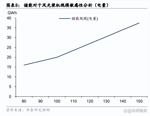 市場(chǎng)化并網(wǎng)項(xiàng)目配儲(chǔ)要求更高,后續(xù)儲(chǔ)能裝機(jī)增速預(yù)計(jì)將高于新能源增速。經(jīng)過(guò)我們預(yù)測(cè), 在所有電站均為平價(jià)電站,保障性并網(wǎng)項(xiàng)目配儲(chǔ) 10%,儲(chǔ)能時(shí)長(zhǎng) 2 小時(shí),市場(chǎng)化并網(wǎng)項(xiàng)目 配儲(chǔ) 15-20%,儲(chǔ)能時(shí)長(zhǎng) 4 小時(shí),全國(guó)保障性并網(wǎng)項(xiàng)目總規(guī)模 100GW 的假設(shè)下,風(fēng)光并網(wǎng) 總規(guī)模超過(guò) 100GW 后,儲(chǔ)能規(guī)模隨著風(fēng)光并網(wǎng)規(guī)模增長(zhǎng)的速度將加快。具體到市場(chǎng)化并網(wǎng) 項(xiàng)目配儲(chǔ) 17.5%時(shí),當(dāng)風(fēng)光并網(wǎng)規(guī)模低于 100GW,并網(wǎng)規(guī)模每增加 10GW 儲(chǔ)能規(guī)模將增 加 1GW,當(dāng)風(fēng)光規(guī)模高于 100GW,并網(wǎng)規(guī)模每增加 10GW 儲(chǔ)能規(guī)模將增加 1.75GW。