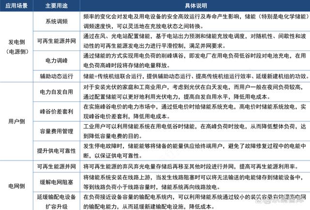 發(fā)電側(cè)可用于系統(tǒng)調(diào)頻、可再生能源并網(wǎng)、電力調(diào)峰、輔助動(dòng)態(tài)運(yùn)行等;在用戶側(cè)主要用于電力自發(fā)自用、峰谷價(jià)差套利、容量電費(fèi)管理和提升供電可靠性等;在電網(wǎng)側(cè)主要用于可再生能源并網(wǎng)、緩解電網(wǎng)阻塞、延緩輸配電設(shè)備擴(kuò)容升級等。