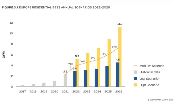 歐洲光伏產(chǎn)業(yè)協(xié)會(huì)《歐洲戶用儲(chǔ)能市場展望報(bào)告 2022-2026》裝機(jī)量預(yù)測