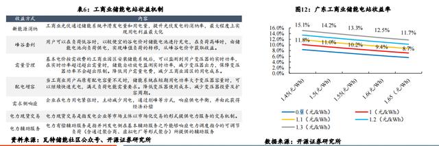 以廣東為代表的工商業(yè)較為發(fā)達(dá)的地區(qū)工商業(yè)儲能電站已經(jīng)具備了一定經(jīng)濟(jì)性。在廣東地區(qū),在僅考慮峰谷價差套利單一受益方式的情況下, 工商業(yè)儲能電站通過每天兩充兩放(一次谷充尖放、一次平充峰放),初始投資成本為1.6元/Wh,最大峰谷價差在1.1元/度的情況下,其資 本金收益率可達(dá)9.4%,投資回收期在8年之內(nèi)。在鋰電成本持續(xù)下降的情況下,改投資回收期有望進(jìn)一步縮短。