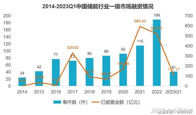 在投融資上,儲能行業(yè)也成為一級市場投資新熱點,其熱度持續(xù)高漲,尤其是2022年,儲能融資處于爆發(fā)期。據(jù)睿獸分析統(tǒng)計,2022年,我國儲能行業(yè)融資事件189件,同比增長64.3%,融資金額520.97億元,也處于高位。