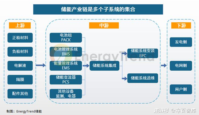 具體來看,鋰電池儲能產(chǎn)業(yè)鏈一般有三個環(huán)節(jié),從上游設(shè)備商、中游系統(tǒng)集成商再到下游應(yīng)用端。儲能項目的建設(shè)流程一般是應(yīng)用端對儲能項目進(jìn)行招標(biāo),系統(tǒng)集成商去競標(biāo),電池企業(yè)再向集成商提供儲能電池。