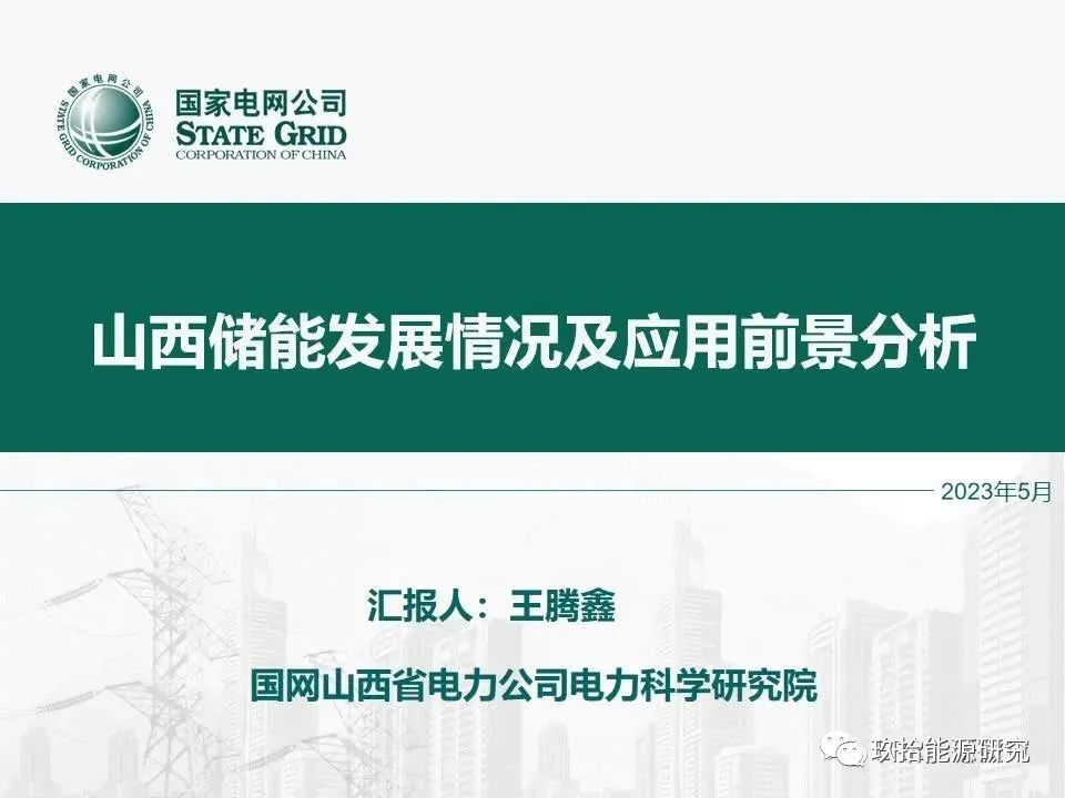 國(guó)網(wǎng)山西省電力公司電力科學(xué)研究院王騰鑫:山西儲(chǔ)能發(fā)展情況及應(yīng)用前景分析
