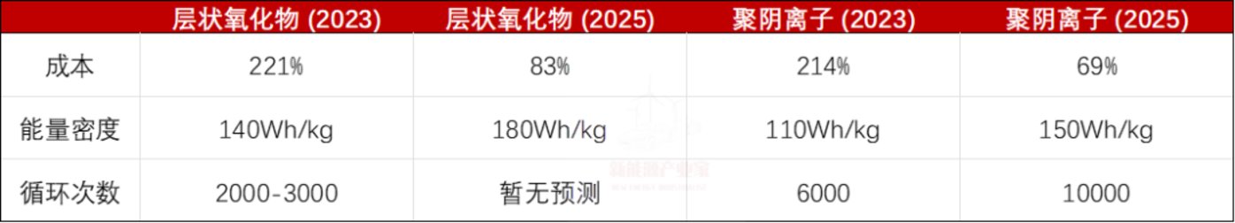 可以看到,除了能量密度率略有差異,聚陰離子具備更誘人的性價(jià)比。