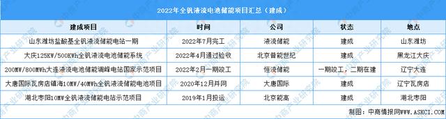 全釩液流電池具有響應快、安全環(huán)保、壽命長、規(guī)模大等特點,適合長時儲能,市場發(fā)展空間廣闊。2022年,我國全釩液流電池儲能項目中,建成項目5個,在建項目14個。