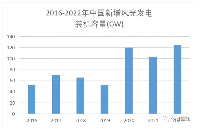 中國新增風(fēng)光發(fā)電裝機(jī)容量圖 (數(shù)據(jù)來源:國家能源局、中電聯(lián),iFinD)