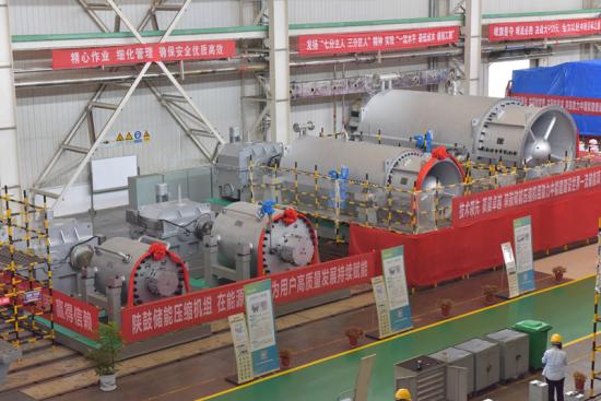 9月20日上午,全球首套非補燃型300MW級壓縮空氣儲能項目核心裝備壓縮機組下線發(fā)運儀式在陜鼓集團臨潼制造園區(qū)總裝車間舉行。該項目是陜鼓與中能建數(shù)字科技集團有限公司(以下簡稱“能建數(shù)科”)強強合作,以能建數(shù)科湖北應城300MW壓縮空氣儲能項目為依托,在世界級壓縮空氣儲能領(lǐng)域的一次全新探索。項目建成后,將助力非補燃壓縮空氣儲能領(lǐng)域?qū)崿F(xiàn)儲能規(guī)模世界第一、單機功率世界第一、轉(zhuǎn)換效率世界第一。