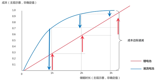 更為關(guān)鍵的是,相較平均儲能時長只有2小時的鋰電池,儲能時長可達8小時以上的液流電池可應對日漸重要的長時儲能需求。
