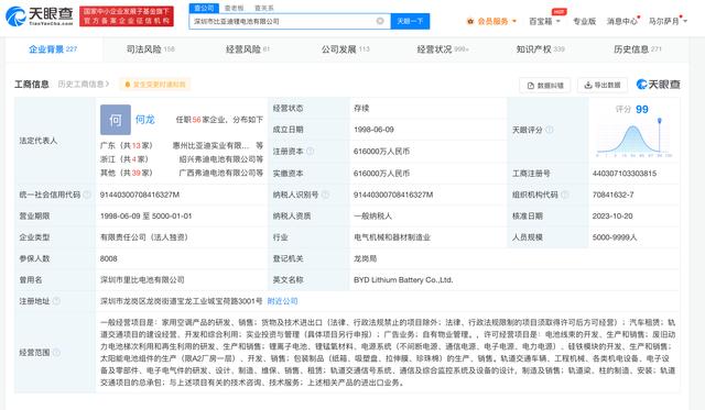 天眼查App顯示,近日,深圳市比亞迪鋰電池有限公司發(fā)生工商變更,王傳福卸任法定代表人、董事長(zhǎng),由何龍接任。