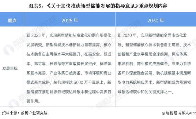 國家發(fā)展改革委、國家能源局聯(lián)合印發(fā)了《關(guān)于加快推動(dòng)新型儲(chǔ)能發(fā)展的指導(dǎo)意見》,提出到2025年,實(shí)現(xiàn)新型儲(chǔ)能從商業(yè)化初期向規(guī)?;l(fā)展轉(zhuǎn)變。新型儲(chǔ)能技術(shù)創(chuàng)新能力顯著提高,核心技術(shù)裝備自主可控水平大幅提升,在高安全、低成本、高可靠、長壽命等方面取得長足進(jìn)步,標(biāo)準(zhǔn)體系基本完善,產(chǎn)業(yè)體系日趨完備,市場環(huán)境和商業(yè)模式基本成熟,裝機(jī)規(guī)模達(dá)3000萬千瓦以上。到2030年,實(shí)現(xiàn)新型儲(chǔ)能全面市場化發(fā)展。新型儲(chǔ)能核心技術(shù)裝備自主可控,技術(shù)創(chuàng)新和產(chǎn)業(yè)水平穩(wěn)居全球前列,標(biāo)準(zhǔn)體系、市場機(jī)制、商業(yè)模式成熟健全,與電力系統(tǒng)各環(huán)節(jié)深度融合發(fā)展,裝機(jī)規(guī)?;緷M足新型電力系統(tǒng)相應(yīng)需求。新型儲(chǔ)能在推動(dòng)能源領(lǐng)域碳達(dá)峰、碳中和過程中發(fā)揮顯著作用。新型儲(chǔ)能成為能源領(lǐng)域碳達(dá)峰、碳中和的關(guān)鍵支撐之一。