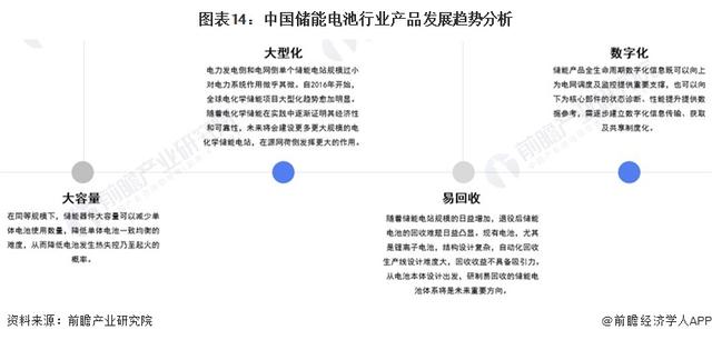 隨著中國儲(chǔ)能電池行業(yè)的快速發(fā)展,大容量、大型化、易回收和數(shù)字化將成為儲(chǔ)能電池主要的發(fā)展方向。在大容量方面,同等規(guī)模下儲(chǔ)能器件的大容量可以減少單體電池使用數(shù)量,降低單體電池一致均衡的難度,從而降低電池發(fā)生熱失控乃至起火的概率;在大型化方面,大型化是配置靈活的電化學(xué)儲(chǔ)能技術(shù)在電力系統(tǒng)中發(fā)揮主導(dǎo)的作用的必經(jīng)之路;在易回收方面,研制易回收的儲(chǔ)能電池體系,使回收收益具備吸引力是未來發(fā)展大方向;在數(shù)字化方面,儲(chǔ)能產(chǎn)品全生命周期數(shù)字化信息既可以向上為電網(wǎng)調(diào)度及監(jiān)控提供重要支撐,也可以向下為核心部件的狀態(tài)診斷、性能提升提供數(shù)據(jù)參考。