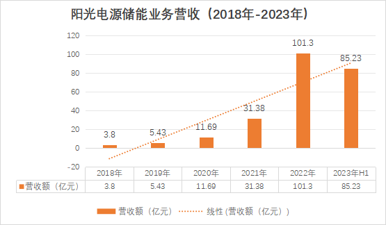 除了出貨量之外,業(yè)績,也是一面鏡子,它是公司過往戰(zhàn)略的倒影。儲(chǔ)能營收的飛速增長,無疑也印證了陽光電源儲(chǔ)能布局和戰(zhàn)略定位的成功。2023年4月25日,陽光電源披露2022年年度報(bào)告,其儲(chǔ)能系統(tǒng)營收實(shí)現(xiàn)101.26億,首次破百億。2023年半年報(bào)顯示,僅半年其儲(chǔ)能營收已經(jīng)高達(dá)85.23億。