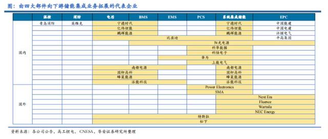 具體來(lái)說(shuō),儲(chǔ)能系統(tǒng)的核心有“四大件”:電池組、儲(chǔ)能變流器(PCS)、電池管理系統(tǒng)(BMS)、能量管理系統(tǒng)(EMS)等。早期每個(gè)環(huán)節(jié)的核心企業(yè),都能過(guò)得不錯(cuò)。但如今,越來(lái)越多企業(yè),從單一產(chǎn)品走向系統(tǒng)集成業(yè)務(wù),加大一體化力度,如陽(yáng)光電源、科陸電子從PCS進(jìn)入系統(tǒng)集成,寧德時(shí)代、億緯鋰能等公司從電池進(jìn)入系統(tǒng)集成。