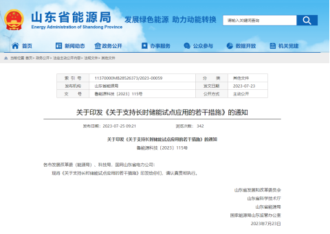 2023年7月,山東省出臺(tái)《關(guān)于支持長時(shí)儲(chǔ)能試點(diǎn)應(yīng)用的若干措施》,要求試點(diǎn)項(xiàng)目規(guī)模不低于10萬千瓦,滿功率放電時(shí)長不低于4小時(shí),這是國內(nèi)首個(gè)支持長時(shí)儲(chǔ)能發(fā)展的地方性專項(xiàng)政策,長時(shí)儲(chǔ)能可享受優(yōu)先接入電網(wǎng)、優(yōu)先租賃、容量補(bǔ)償標(biāo)準(zhǔn)提高、減免輸配電價(jià)等優(yōu)惠政策。