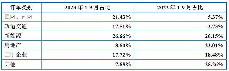 截至2023年9月末,公司在手訂單達(dá)到6.81億元,公司在手訂單充足。下圖可以看出,公司來自新能源和國網(wǎng)等大型客戶的訂單占比明顯提高。2023年公司市場開拓重心主要是新能源和國網(wǎng)南網(wǎng)等大型集團(tuán)客戶、大型項(xiàng)目,2023年1—9月新增訂單結(jié)構(gòu)占比情況如下: