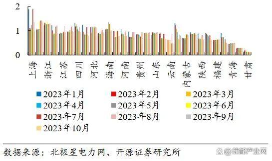 圖:2023年起國內(nèi)峰谷電價差呈拉大趨勢