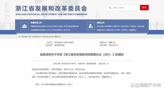 2月7日,浙江省能源局印發(fā)《浙江省新型儲能項目管理辦法(試行)》(以下簡稱《管理辦法》),文件為規(guī)范浙江省新型儲能項目管理,促進(jìn)新型儲能安全、有序、健康發(fā)展。