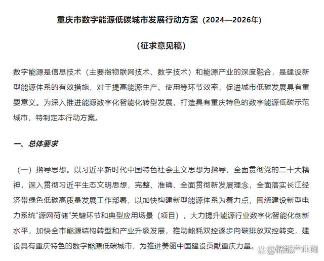 日前,重慶經(jīng)信委印發(fā)《重慶市數(shù)字能源低碳城市發(fā)展行動方案(2024—2026年)(征求意見稿)》。文件提出,到2026年,全市數(shù)字能源低碳城市發(fā)展取得明顯成效,建設(shè)一批具有示范帶動作用的標(biāo)志性項目。完成1000個以上用戶側(cè)光伏和儲能、虛擬電廠、綠色工廠、綠色交通、綠色建筑等領(lǐng)域示范項目,戶用光伏150萬千瓦,用戶側(cè)儲能規(guī)模100萬千瓦/200萬千瓦時。