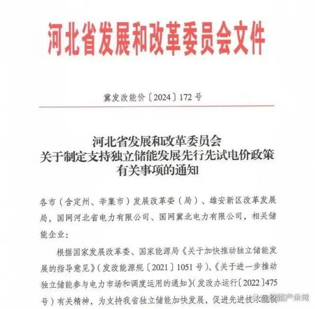 建立獨立儲能容量電價機(jī)制。在容量規(guī)模方面表示,2024年參與競爭的獨立儲能容量規(guī)模為河北南網(wǎng)3GW,冀北電網(wǎng)2.7GW。