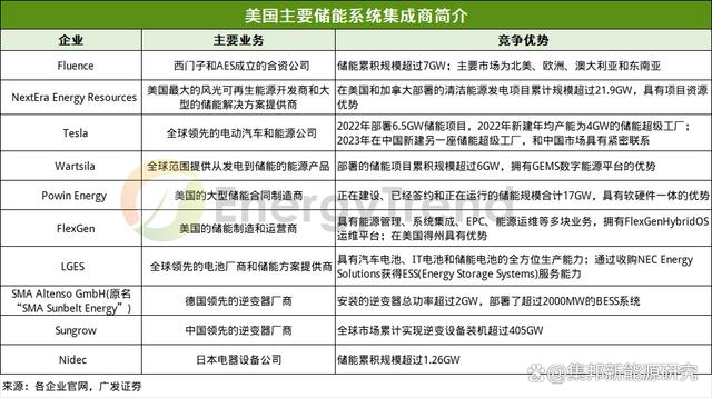 圖:美國市場主要儲能系統(tǒng)集成商簡介