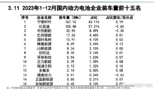 2023年,根據(jù)中國(guó)動(dòng)力電池產(chǎn)業(yè)聯(lián)盟的數(shù)據(jù),國(guó)內(nèi)動(dòng)力電池裝車(chē)前10名中,全年蜂巢能源裝機(jī)量占比增加0.13%,排名第6,相比2022年上升一個(gè)位次。