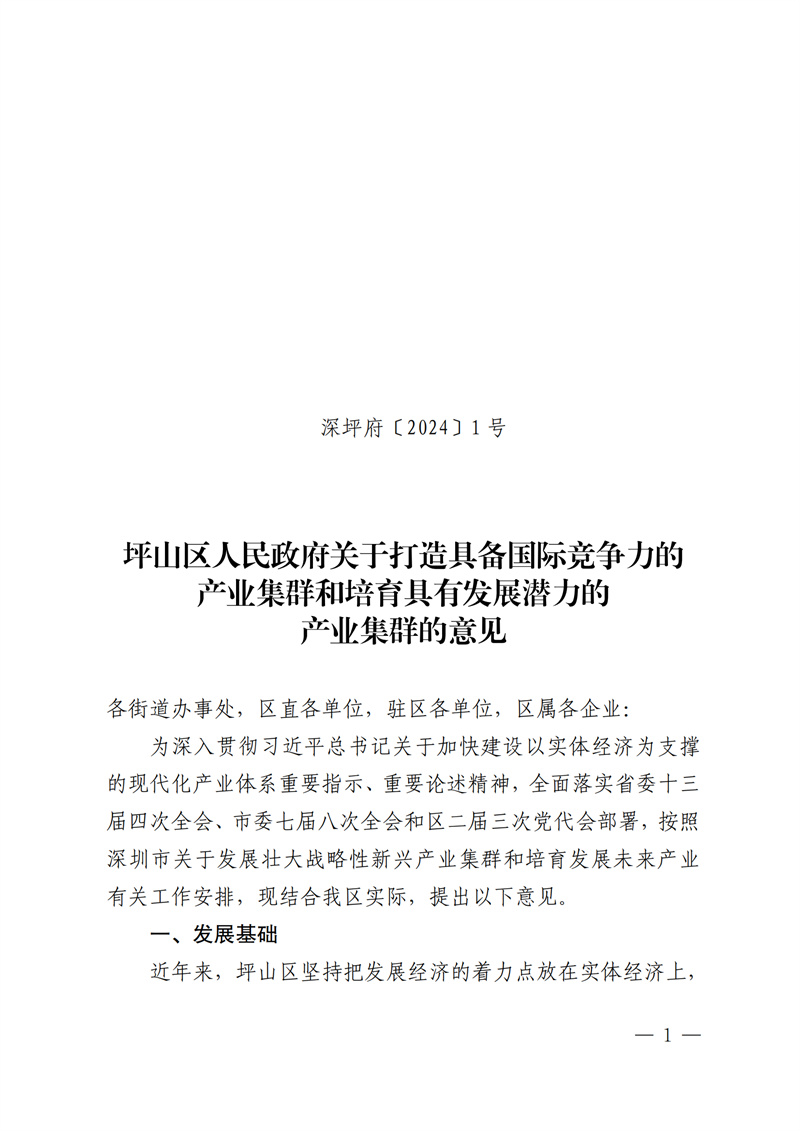 為深入貫徹習(xí)近平總書記關(guān)于加快建設(shè)以實體經(jīng)濟(jì)為支撐的現(xiàn)代化產(chǎn)業(yè)體系重要指示、重要論述精神,全面落實省委十三屆四次全會、市委七屆八次全會和區(qū)二屆三次黨代會部署,按照深圳市關(guān)于發(fā)展壯大戰(zhàn)略性新興產(chǎn)業(yè)集群和培育發(fā)展未來產(chǎn)業(yè)有關(guān)工作安排,現(xiàn)結(jié)合我區(qū)實際,提出以下意見(詳見附件)。