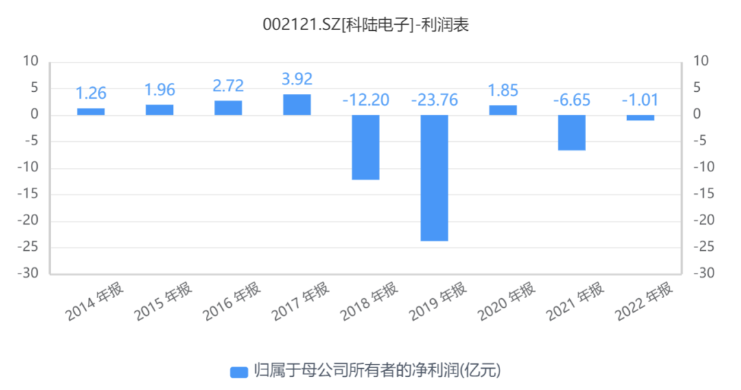 探究科陸電子的發(fā)展歷程,自1996年成立以來,在2018年前一直呈現(xiàn)上升趨勢。從2007年上市初期不足4億元的營業(yè)收入,到2017年躍升至近44億元,凈利潤也從0.68億元攀升至4.59億元,然而,在2018年和2019年,因擔(dān)保暴雷、資產(chǎn)減值等事項,合計虧損高達約36億元,致使過去數(shù)十年的盈利化為烏有,甚至一度瀕臨退市的風(fēng)險。