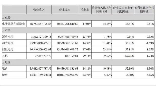 以今年3月國(guó)內(nèi)儲(chǔ)能電芯出貨量排名第二的億緯鋰能為例,公司儲(chǔ)能電池業(yè)務(wù)營(yíng)收已反超動(dòng)力電池。今年一季度,公司儲(chǔ)能電池出貨量7.02GWh,同比增長(zhǎng)113.11%;動(dòng)力電池方面,出貨量6.45GWh,同比增長(zhǎng)僅5.98%。對(duì)比全年數(shù)據(jù)來(lái)看,億緯鋰能儲(chǔ)能電池營(yíng)收占比也在不斷上升,從2023年上半年的30.78%上升至2023年全年的33.5%。與此相對(duì)應(yīng)的是,公司的動(dòng)力電池營(yíng)收占比持續(xù)下降,同期從52.75%下降至49.16%。毛利率方面,同花順iFinD數(shù)據(jù)顯示,億緯鋰能一季度銷(xiāo)售毛利率17.64%,維持在較高水平,但相較寧德時(shí)代同期26.42%的銷(xiāo)售毛利率還有較大差距。