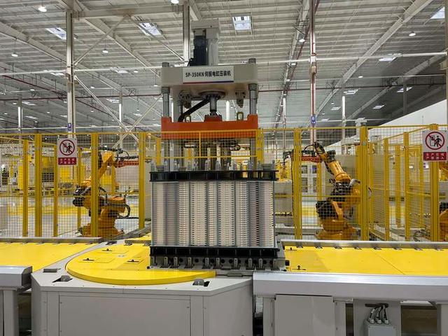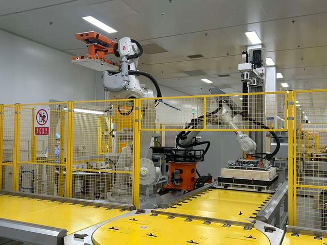 緯景儲(chǔ)能珠海“超G工廠”生產(chǎn)線上的機(jī)械手臂正在工作。中青報(bào)·中青網(wǎng)見(jiàn)習(xí)記者 賈驥業(yè)/攝