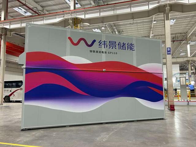 緯景儲(chǔ)能珠海“超G工廠”廠區(qū)內(nèi)展示的緯景儲(chǔ)能鋅鐵液流電池GP110。中青報(bào)·中青網(wǎng)見(jiàn)習(xí)記者 賈驥業(yè)/攝