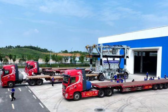6月14日,位于湖北省宜昌市夷陵區(qū)龍泉鎮(zhèn)的宜昌楚能新能源創(chuàng)新科技有限公司集裝箱車間門口,6輛大貨車一字排開,裝載著6個(gè)楚能20尺5MWh電池集裝箱整裝待發(fā),即將啟航新疆。