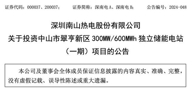 目的及影響方面,深南電A表示,投資中山市翠亨新區(qū)300MW/600MWh獨(dú)立儲(chǔ)能電站(一期)項(xiàng)目符合公司在新形勢(shì)下戰(zhàn)略發(fā)展的需求,有利于推動(dòng)公司在大型儲(chǔ)能領(lǐng)域的探索與實(shí)踐,助力公司向綜合能源服務(wù)轉(zhuǎn)型;有利于公司充分利用現(xiàn)有資源,打造新型商業(yè)模式,推動(dòng)公司全面轉(zhuǎn)型發(fā)展;有利于中山市深入貫徹落實(shí)“雙碳”政策,打造獨(dú)立儲(chǔ)能項(xiàng)目示范,協(xié)同儲(chǔ)能相關(guān)產(chǎn)業(yè)鏈;有利于盤(pán)活中山公司線(xiàn)路資產(chǎn),促進(jìn)國(guó)有資產(chǎn)的提質(zhì)增效。在確保公司日常經(jīng)營(yíng)和資金安全的前提下,使用中山公司線(xiàn)路資產(chǎn)投資中山市翠亨新區(qū)300MW/600MWh獨(dú)立儲(chǔ)能電站(一期)項(xiàng)目不影響公司日常資金周轉(zhuǎn)需要,不影響公司生產(chǎn)經(jīng)營(yíng)的正常開(kāi)展。中山市翠亨新區(qū)300MW/600MWh獨(dú)立儲(chǔ)能電站(一期)項(xiàng)目產(chǎn)業(yè)方向符合公司未來(lái)的戰(zhàn)略布局,將會(huì)對(duì)公司未來(lái)的財(cái)務(wù)狀況及長(zhǎng)遠(yuǎn)發(fā)展產(chǎn)生積極影響。