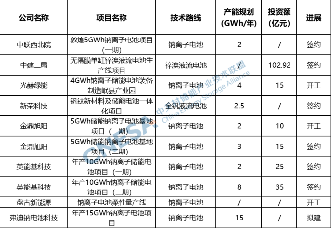 表 非鋰電池產(chǎn)能項目