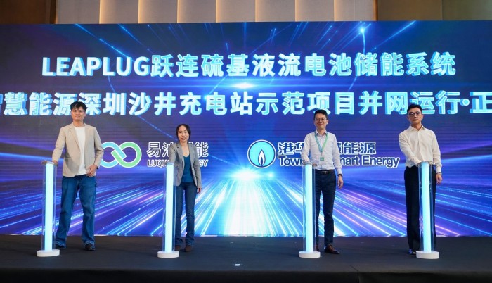 7月29日,香港中華煤氣子公司港華智慧能源與易池新能(Luquos Energy)合作的首個(gè)應(yīng)用硫基液流電池儲(chǔ)能系統(tǒng)的充電站配儲(chǔ)示范項(xiàng)目正式啟動(dòng)并網(wǎng)運(yùn)行。同時(shí),易池新能正式發(fā)布LEAPLUG 躍連硫基液流電池儲(chǔ)能系統(tǒng),該系統(tǒng)也是首個(gè)用于示范項(xiàng)目的硫基液流電池儲(chǔ)能系統(tǒng)。