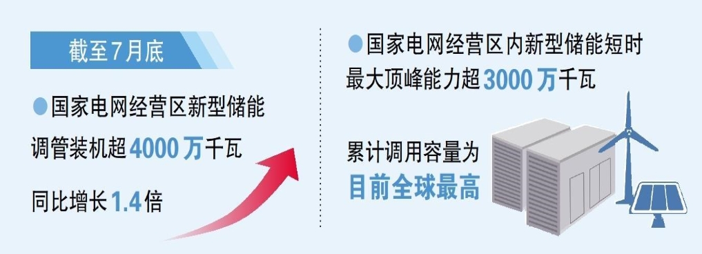 在國家政策和技術創(chuàng)新驅(qū)動下,我國新型儲能呈現(xiàn)規(guī)模化發(fā)展趨勢。截至7月底,國家電網(wǎng)有限公司經(jīng)營區(qū)內(nèi)新型儲能調(diào)管裝機超4000萬千瓦,同比增長1.4倍。公司做好新型儲能并網(wǎng)及調(diào)度運行,服務新型儲能高質(zhì)量發(fā)展。