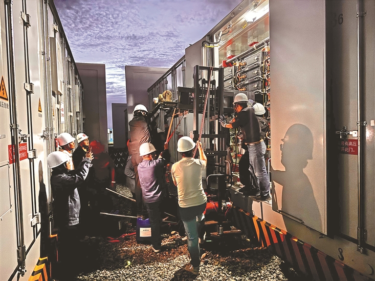 “這項(xiàng)紀(jì)錄的誕生,得益于高壓直掛儲能技術(shù)極大地簡化了大型儲能電站的構(gòu)建方案。”郝卓龍算了一筆賬,建設(shè)一座150兆瓦/600兆瓦時儲能電站,如采用低壓儲能技術(shù),需85—800臺功率逆變設(shè)備進(jìn)行并聯(lián),不僅系統(tǒng)復(fù)雜程度高,且存在低頻或?qū)掝l振蕩風(fēng)險。要達(dá)到同樣容量,只需要6套采用高壓直掛儲能技術(shù)的設(shè)備,建設(shè)速度自然較快。
