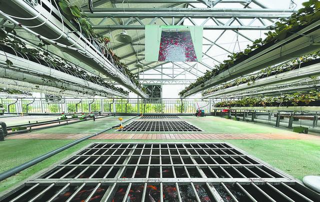 比如長(zhǎng)豐縣陶樓鎮(zhèn)的“光伏+智慧農(nóng)業(yè)”科技示范基地內(nèi),有不少科技大棚,采用了棚頂光伏發(fā)電、中間種植草莓生菜、下面水產(chǎn)養(yǎng)殖的光伏漁菜養(yǎng)殖模式。光伏板設(shè)于大棚頂部,源源不斷提供電能,底部安裝了集中箱進(jìn)行養(yǎng)魚(yú),上方則種植著一排排盆栽草莓和辣椒,一幅現(xiàn)代智慧農(nóng)業(yè)風(fēng)景圖生機(jī)勃勃。