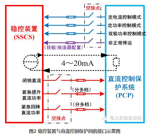 是指在“純開關(guān)量接口”的基礎(chǔ)上,穩(wěn)控裝置的“開關(guān)量”分檔控制命令,變?yōu)榱恕澳M量”無極控制。這里的“模擬量”是指工業(yè)控制系統(tǒng)中常用來傳輸非電物理量(如溫度、壓力、角度等)的4~20mA電流信號(hào),如圖2虛線部分所示。