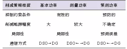 文獻(xiàn)[6]在結(jié)合文獻(xiàn)[5]研究成果的基礎(chǔ)上,描述了如何在規(guī)劃之中考慮不同的動態(tài)削減發(fā)電出力方法。不同削減策略的比較如表1所示,文中利用測量功率和短期預(yù)測功率來削減DG發(fā)電出力,證明了在簡單地削減DG發(fā)電出力的情形下,很容易保證電網(wǎng)運(yùn)行的可靠性,即故障發(fā)生前就可以被修復(fù)。在分布式能源提供更多系統(tǒng)服務(wù)(如電壓平衡、無功補(bǔ)償?shù)龋┑膹?fù)雜主動配電系統(tǒng)區(qū)域內(nèi),則必須采用短期預(yù)測技術(shù)。