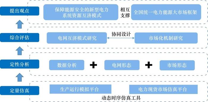 在資源配置模式方面,采取定量仿真、定性分析、綜合評估等方式,根據(jù)生產(chǎn)運行模擬平臺、電力現(xiàn)貨市場仿真平臺的結(jié)果,融合電網(wǎng)形態(tài)及市場形態(tài)數(shù)據(jù)分析,論證形成新型能源體系下電網(wǎng)互濟模式及相應的市場支撐機制,從而構(gòu)建新型電力系統(tǒng)資源互濟模式、全國統(tǒng)一電力能源大市場框架相互支撐的大范圍共享互濟體系。
