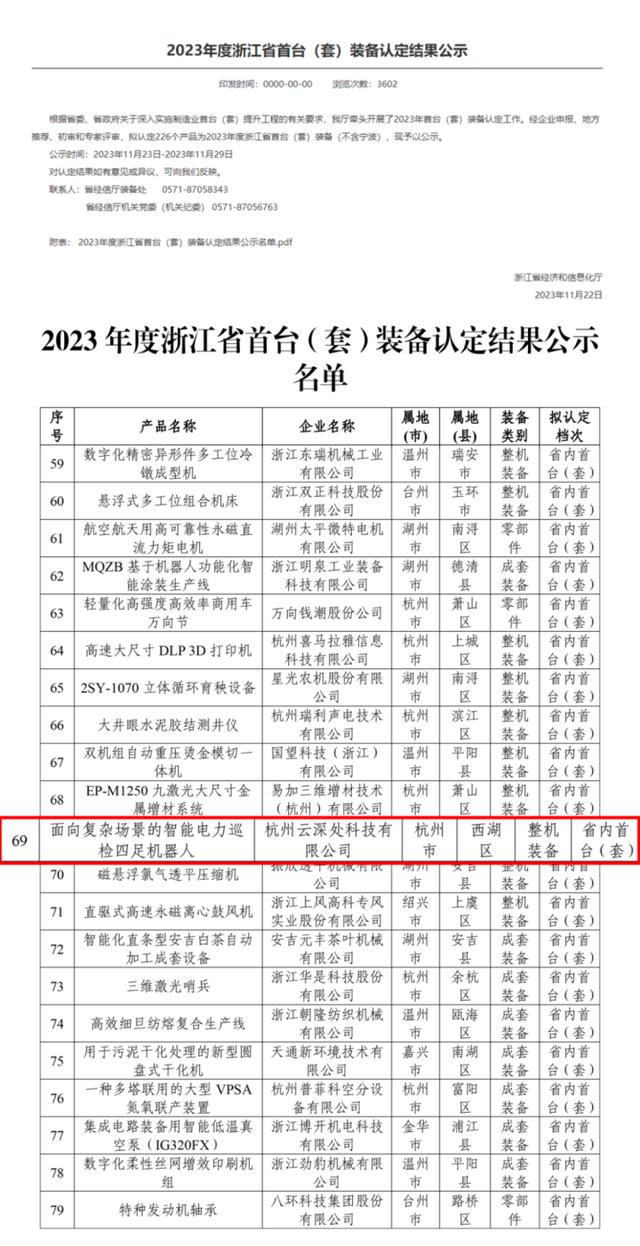 云深處電力四足機(jī)器人入選浙江省首臺(tái)(套)裝備