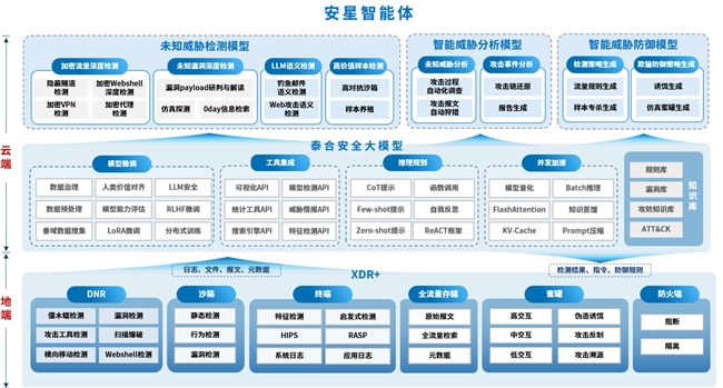 在威脅檢測層面,安星智能體利用大模型的環(huán)境感知、意圖理解和工具調(diào)用能力,智能化調(diào)度各種檢測工具和算法,大小模型協(xié)同應(yīng)用,將AI能力融入到威脅檢測與響應(yīng)的每個環(huán)節(jié),大幅提升威脅檢測的應(yīng)對能力和反應(yīng)速度。
