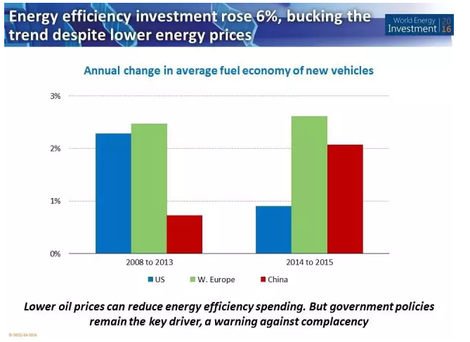 盡管能源價(jià)格下降,2015年能效投資仍然有6%的增幅。
