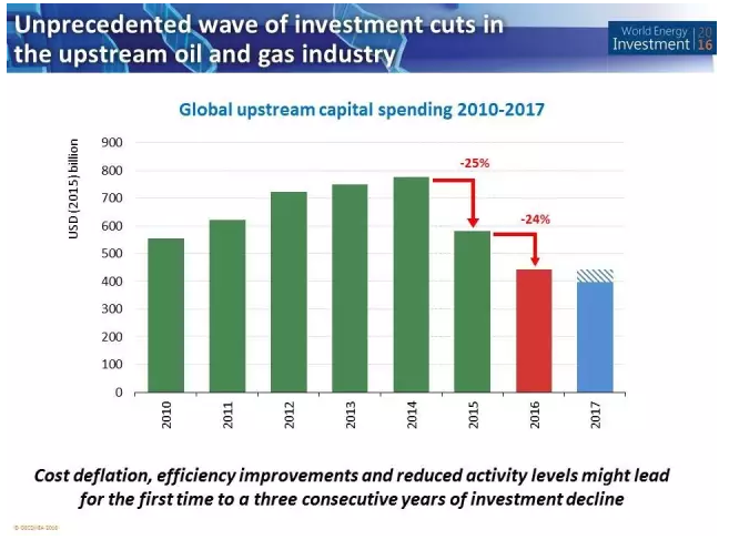 說(shuō)到油氣下降,IEA首席經(jīng)濟(jì)學(xué)家LaszloVARRO介紹,石油和天然氣上游產(chǎn)業(yè)已連續(xù)兩年出現(xiàn)投資縮減,基本上甚至縮減達(dá)到50%,約30億美元。IEA預(yù)計(jì)接下來(lái)會(huì)有一個(gè)穩(wěn)定期,未來(lái)一年不會(huì)有進(jìn)一步的縮減。