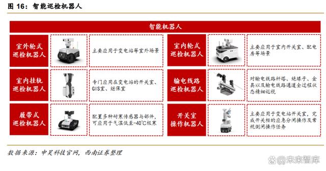 巡檢是保障電網(wǎng)穩(wěn)定性的重要環(huán)節(jié)。巡檢機(jī)器人有多種應(yīng)用場(chǎng)景,可在變電站、輸電網(wǎng) 等場(chǎng)景使用,其中在變電站的應(yīng)用更早,變電站巡檢場(chǎng)景包括室外場(chǎng)景及高壓室、保護(hù)室、 開(kāi)關(guān)室等室內(nèi)場(chǎng)景。巡檢機(jī)器人可實(shí)現(xiàn)對(duì)室內(nèi)外設(shè)備的精準(zhǔn)檢測(cè),并通過(guò)后臺(tái)對(duì)巡檢數(shù)據(jù)進(jìn) 行比對(duì)和分析,實(shí)現(xiàn)預(yù)測(cè)性維護(hù),在提高巡檢效率的同時(shí),可有效保障設(shè)備的平穩(wěn)運(yùn)行。此 外,由于輸電通常在溝壑、高山、丘陵等環(huán)境復(fù)雜的區(qū)域,且輸電線路直接暴露于大氣環(huán)境 中,在運(yùn)行中會(huì)誘發(fā)多種事故,人工巡檢和檢修面臨著線路長(zhǎng)、工作強(qiáng)度大、條件艱苦、效率低下、檢測(cè)質(zhì)量不佳等一系列問(wèn)題,無(wú)法獲得輸電線路的實(shí)時(shí)運(yùn)行情況,甚至威脅作業(yè)人 員的生命安全,通過(guò)輸電線路巡檢機(jī)器人可實(shí)現(xiàn)對(duì)輸電線路桿塔、絕緣子以及輸電線路通道 等精確巡視,自動(dòng)采集數(shù)據(jù)并進(jìn)行后臺(tái)分析,為輸電線路的運(yùn)維提供可靠的信息。