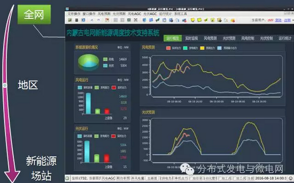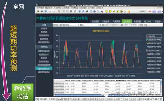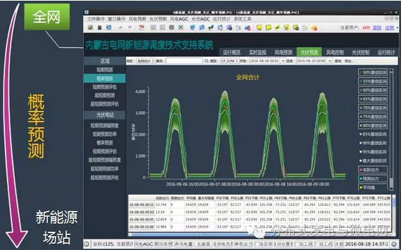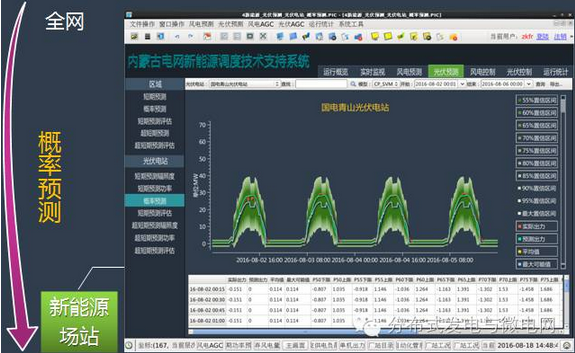 2014年12月,光伏發(fā)電信息采集和實時監(jiān)視;2015年11月,光伏發(fā)電短期和超短期預(yù)測;2016年1月,光伏發(fā)電概率預(yù)測;2016年7月,風(fēng)光火蓄協(xié)調(diào)實時閉環(huán)控制,新能源調(diào)度運行指標(biāo)統(tǒng)計系統(tǒng);全面實現(xiàn)可觀、可控、可預(yù)測。